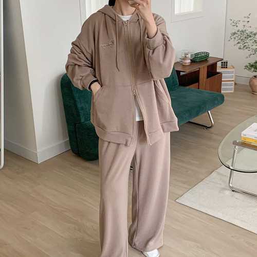 옷자락 / 여자 자수 투웨이 박시 후드집업 맥시 와이드팬츠 세