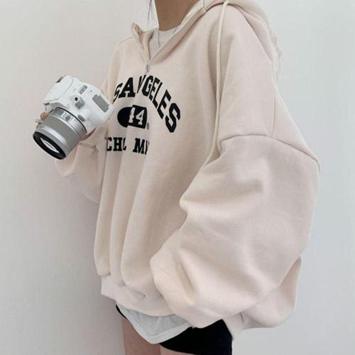 여성 베이직한 반집업 2컬러 레터링 후드티 LK-TA10