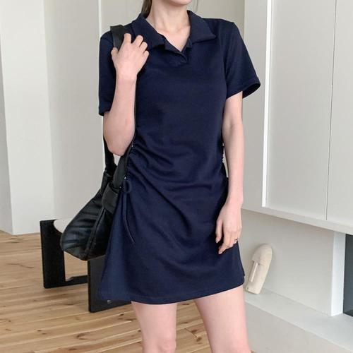 [옷자락] 여자 면혼방 옆셔링 슬림핏 카라 반팔 미니원피스
