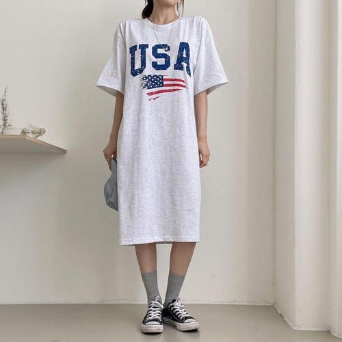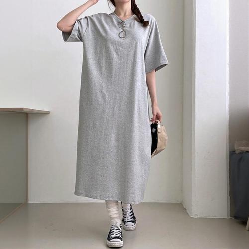 [더바디시크릿]빅사이즈 루즈핏 반팔 롱원피스 여름 데일리 체형커버