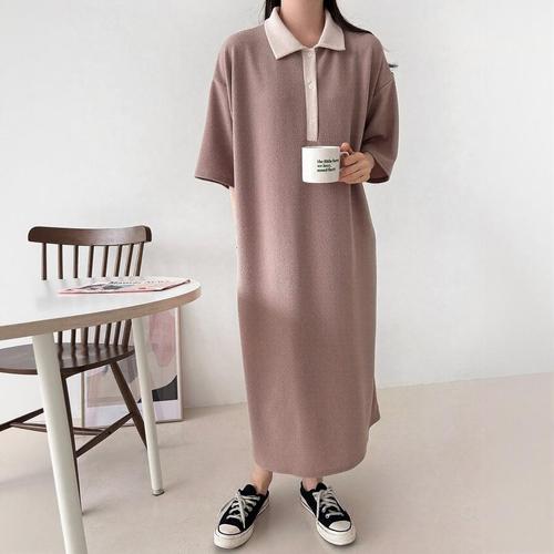 [다잇템]여성용 카라 빅사이즈 반소매 내추럴 쿨 원피스