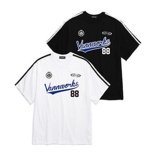 [밴웍스]소매 테잎 테일 로고 유니폼 오버핏 반팔 티셔츠 (VS0054)