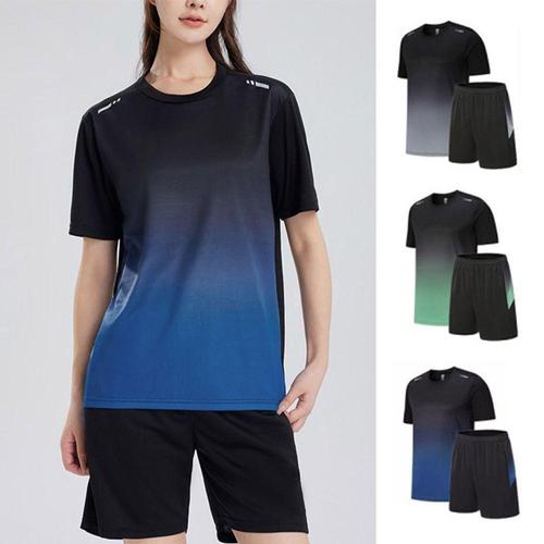 [셀럽하우스]남녀 YVYK9469 쿨링 스타일 그라데이션 반팔 트레이닝세트 고품
