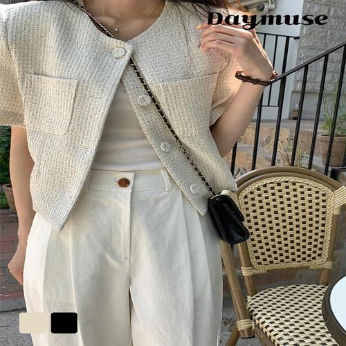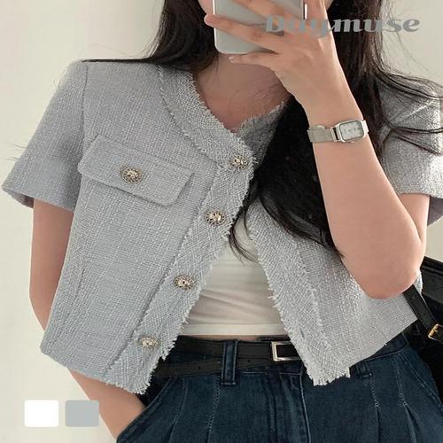 swygsqql 여성 반팔 트위드 자켓 키작녀 얇은 기질 패션 캐주얼 여름 자켓