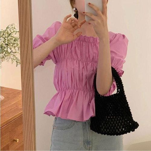 반팔 여자 시원한 퍼프 청순 블라우스 스퀘어넥 여름 WFKBWXK