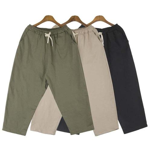OW0249A 여성 여름 캐주얼 루즈핏 허리밴딩 9부 일자 통바지 배기 슬랙스