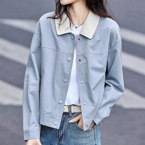 [셀럽하우스]데님 QCQO4500 아우터 간절기 점퍼 배색 카라 블루종 데님자켓