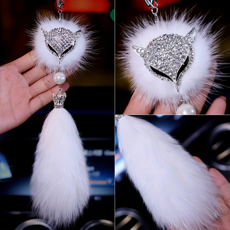 TEMU 여우 펜던트, 인조 펫 펄 태슬 장식 - 반짝이는 차량 내부 펜던트, 여성용, 귀여운 만화 여우 디자인, 차량 장식용