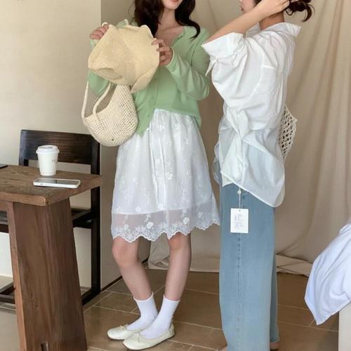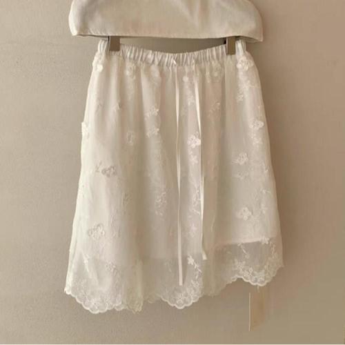 [옷자락]여성 일상복 필수 아이템 꽃 자수 레이스 밴딩 미니 스커트