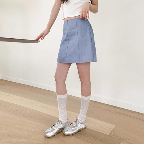 [옷자락]여성 일상용 봄여름 청헤링본 밴딩 미니스커트