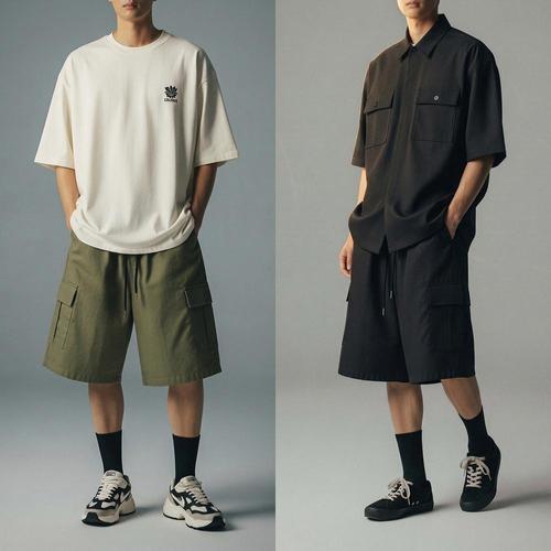 1+1 남자 반바지 카고 반바지 여름용 밴딩 기본 범록-8528