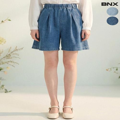 [비엔엑스]여성 밴딩 핀턱 4부 데님 반바지