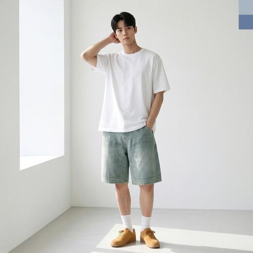[리빌모아]남자 카펜터 버뮤다 와이드 밴딩 데님 반바지 DJ-JEH-SACC2009M