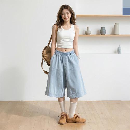 [굿쇼핑몰_의류]여성 밴딩 숏 여름 베이직 면 데님 반바지 하프 팬츠