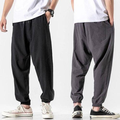 남성 린넨 배기 마바지 캐주얼 여름 블루머 밴딩 팬츠