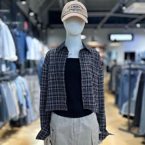 [버커루]여성 면혼방 크롭 체크 긴팔셔츠_DG