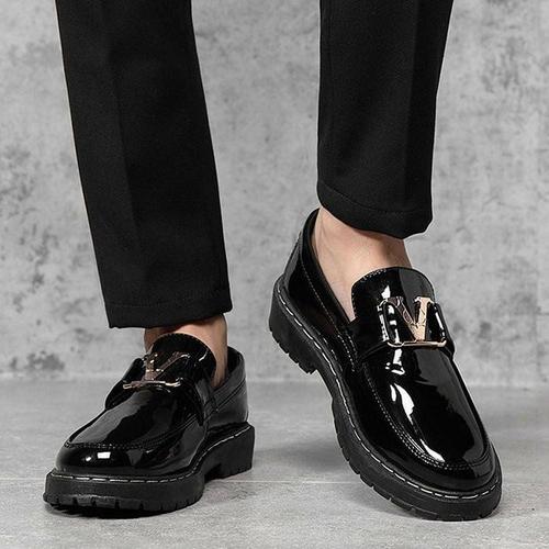[라일리] Rly 남성 애나멜 로퍼 유광 버클장식 스티치 구두