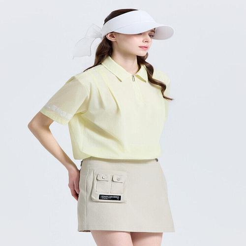 [챌린저]여성 제로라이트 벌룬 스트링 카라 반팔 우븐탑 옐로우_CHF2WWT6613YE_IC