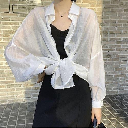 [라일리여성의류] Rly 남방 여자 시스루 얇은 블라우스 셔츠 벌룬소매