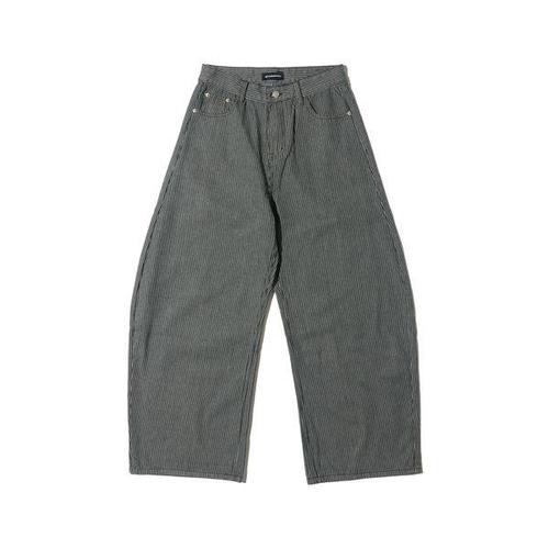 [옷자락]여자 스트라이프 워싱 로우라이즈 벌룬 와이드 청바지
