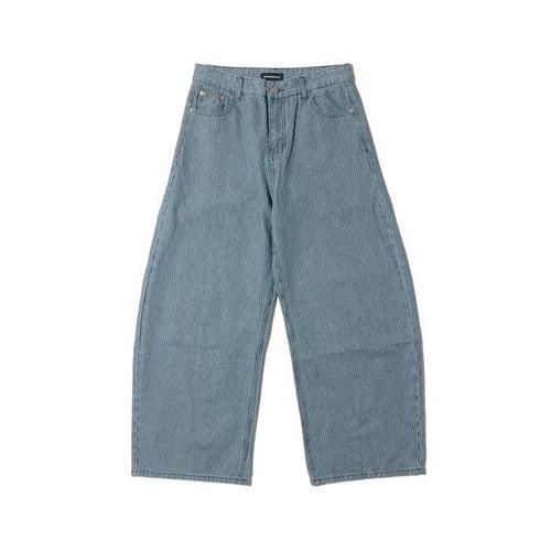 [옷자락] 여자 스트라이프 워싱 로우라이즈 벌룬 와이드 청바지