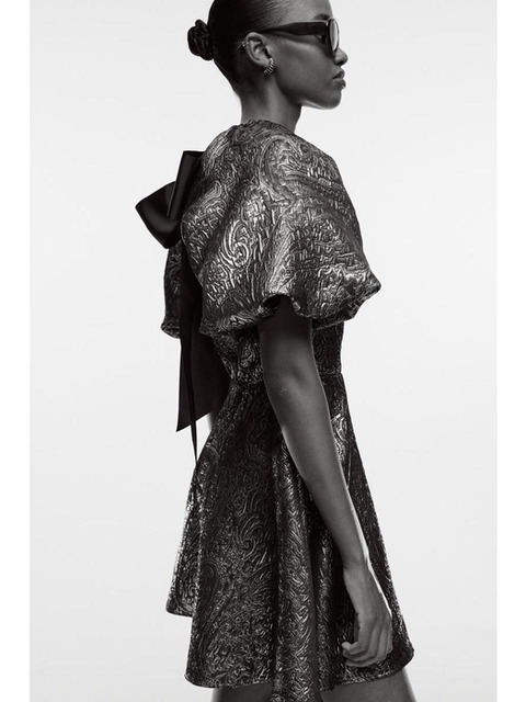 [아방] 패턴 셔링 벌룬 미니 원피스 - 블랙