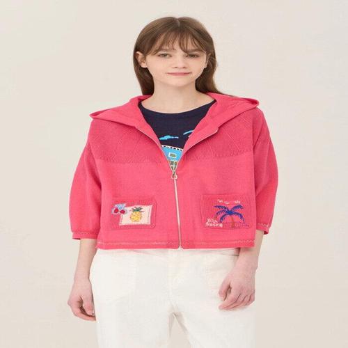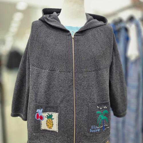 베네통 백 자수 후드 반팔 가디건 BAKCB8431 GN