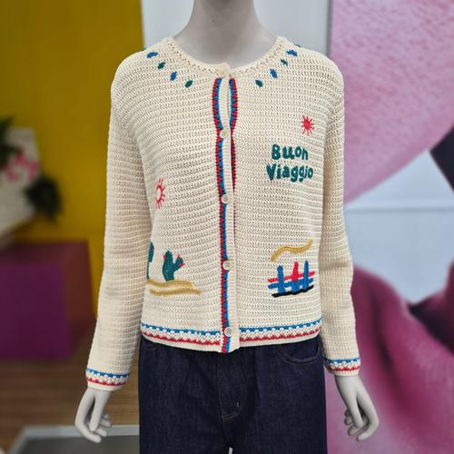 [베네통]베네통 배색 자수 크로셰 니트가디건 BAKC50531_DJ