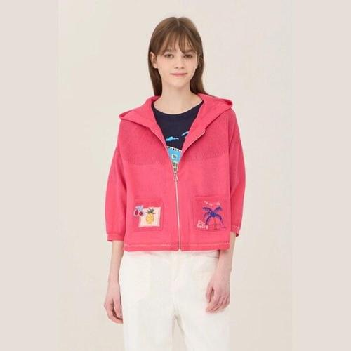 베네통 백 자수 후드 반팔 가디건 BAKCB8431_IV