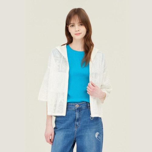 [베네통]메쉬 자카드 크롭 니트 가디건_BAKC56531