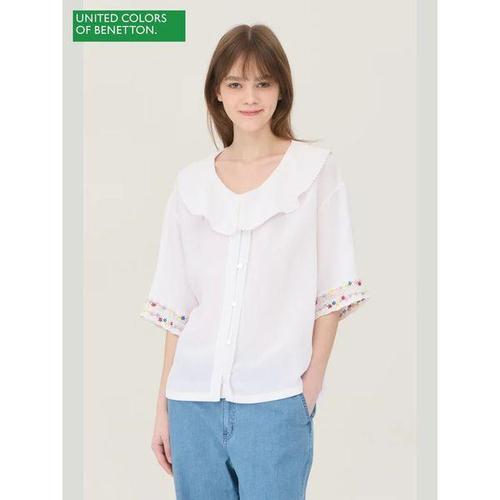 [베네통]플라워 레이스 카라 블라우스_BABL59531