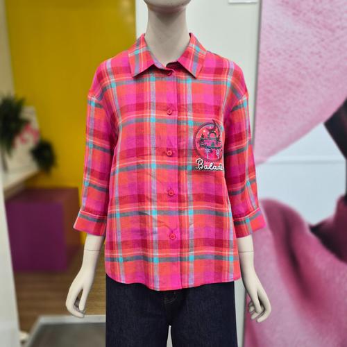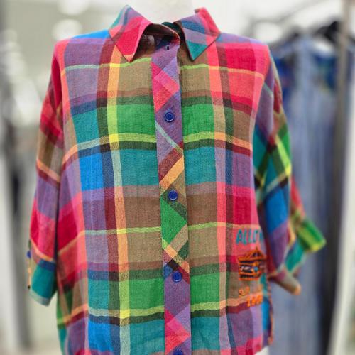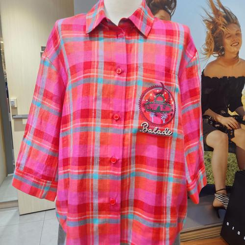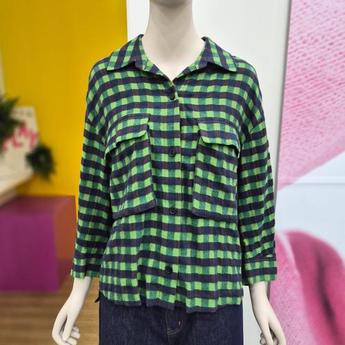 [베네통]체크린넨포켓자수블라우스BABLB3631 BP_BP