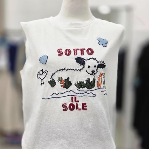 [베네통]자수 슬리브리스 티셔츠_BATS64531