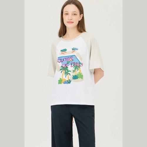[베네통]야자수 래글런 배색 티셔츠_BATS91531