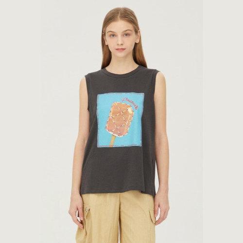 [베네통]아이스크림 프린팅 민소매 티셔츠_BATSF1531