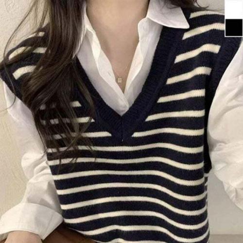 [셀럽하우스]브이넥 WBZD4084 여성 추천 스트라이프 조끼 1P 간절기 패션 베