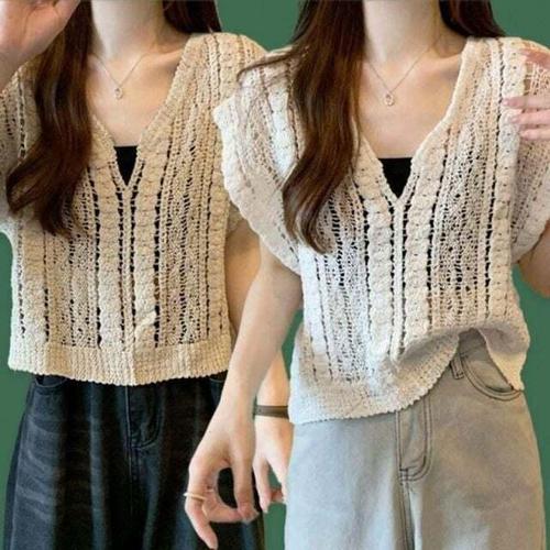 [셀럽하우스]여름 GDYN5082 여성 캐주얼 크로셰 브이넥 필수템 뜨개 조끼 베