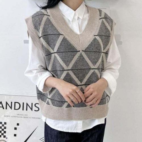 [셀럽하우스]사선 WSTF5434 여성 데일리 조끼 울니트 클래식 브이넥 여자 베