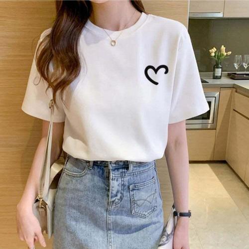 TEMU 2026년 신상 패션 스타일 여성용 라운드넥 프린트 패션 여름 쿨 반팔 캐주얼 반팔 티셔츠