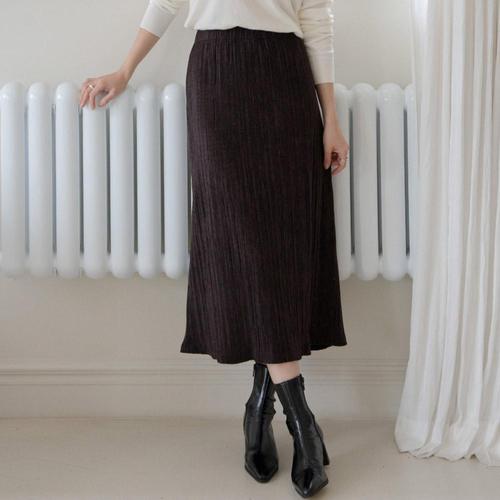 EAMT 스커트 치마 미디 검정 벨벳 밴드 여성치마 주름 H라인 YJ5