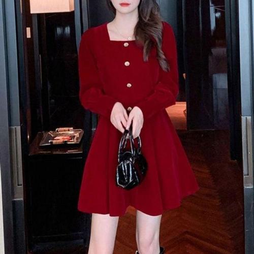 스퀘어넥 플레어 벨벳 여성원피스 스커트라인 어깨셔 WD7D8D3