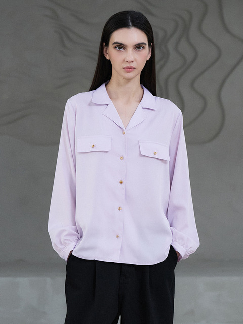 [플루나스튜디오] 골드 버튼 시티 블라우스 연보라