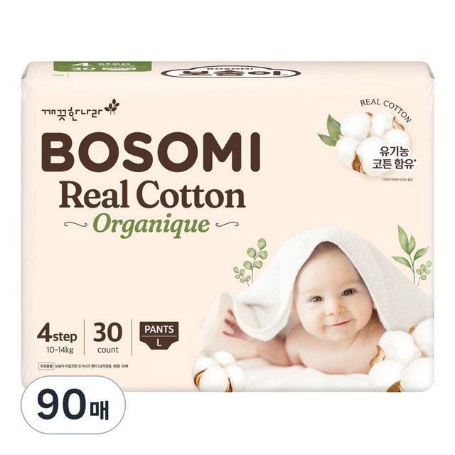 보솜이 리얼코튼 오가니크 팬티기저귀 대형 30개입 3팩