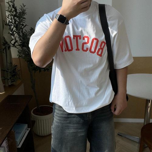 [셀러허브_여성트랜드패션]보스턴 남녀공용 레터링티 라운드넥 반팔티