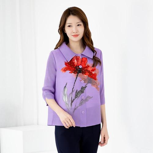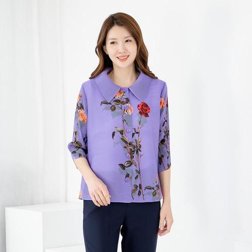 [모슬린]엄마옷 자켓 플리츠 볼레로 7부 줄기장미 MQG126959 마담 미시 중년여성 빅사이즈 할머니옷 50대..