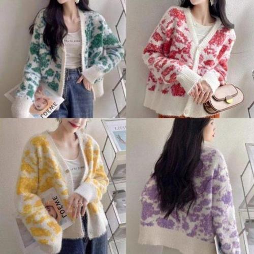 오프시즌 38 니트 오픈 가디건 여성용 캐시미어 짧은 루즈핏 라운드넥 아우터웨어 큰 사이즈 스웨터 봄 가을