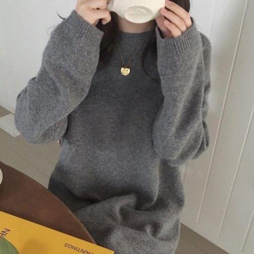 [오너클랜]인기상품 여성용 그레이 무지 니트 롱원피스 봄가을 겨울 하객룩 심플 원피스 [WFLI1RH_260227]