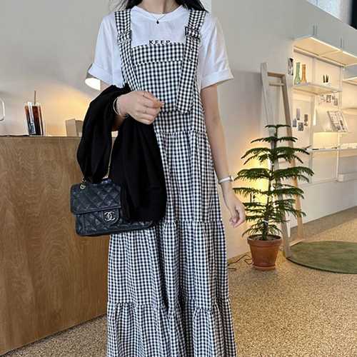 체크 뷔스티에 롱원피스 나시 데일리룩