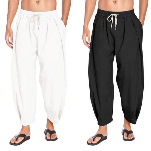 PASLTER 남성 하렘 팬츠 린넨 요가 비치 배기 여름 보호 알라딘 지니