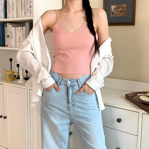 [옷자락] 여자 베이직 브이넥 슬림핏 골지 끈나시
